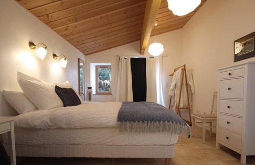 English with French ancestry and adopted from Brionnais, Roddy welcomes you to a superb charming residence - an authentic 18th century farmhouse carefully renovated - located in the countryside in the heart of a splendid unspoiled setting of nature and greenery. Charming typical hamlet nestled on the hillside in the foothills of the Beaujolais Mountains in the hollow of a charming mountainous cirque of meadows and forests. Absolute calm. Beautiful site and setting. Rich heritage to discover on the territory including a unique density of Romanesque churches (dedicated circuit of more than 100 churches and chapels) and more than 250 remarkable buildings (castles, fortresses, manors). Spacious cottage of great comfort. Warm contemporary cachet between Nordic spirit and "chic countryside". Very charming. Soft and cozy atmosphere. Very complete high quality equipment. Large exposed terrace with summer kitchen. Pleasant garden with beautiful swimming pool. Beautiful unobstructed view of the lovely surrounding countryside. Splendid panorama & landscapes. Composition: Detached house on 3 levels. Wireless. Phone. Gas central heating. Wood stove (wood provided). Ground floor: living room-kitchen-lounge (separate living room), office (PC & printer), 1 bedroom accessible to people with reduced mobility (bed 2 p. 160x200) with private bathroom (shower / wc). 1st floor: 2 bedrooms. (bed 2 p. 160x200 / 2 beds 1 p. 90x200) with private bathroom (shower / bath). 2nd floor: 1 bedroom. (2 beds 1 p. 90x200) with private bathroom (shower). 2 separate toilets (1st + 2nd floor). Terrace + garden + swimming pool (4x8m) + private parking. Shops and services 7 km. Station 33 km. TGV stations Mâcon 50 km, Creusot 73 km.