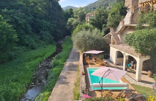 Located on the second level of the medieval building, Le soleil du sud offers a view breathtaking views of the pool, river and surrounding forest.