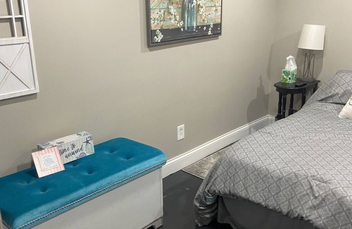 Take a trip back to the days of prohibition. The entire space is yours and it’s themed as a Speak Easy. Lots of sitting, entertainment and decorations to read and admire. The space now has 2 full bedrooms This place is one of a kind and unique. After a long day take a dip in the indoor jet hot tub or even the walk in granite shower. Also please help yourself to a fully stocked bar area, anything out is accessible and you are welcome to consume. This place has everything you need for a comfortable stay and the privacy to go along with it. Also has a developing game room with foosball , Megatouch and more. Full access to washer and Dryer, ice maker, etc. Message any time for possible discounted rate on the night you would like to stay. Coffee maker, smart tv with Hulu and Netflix private parking on the property as well also spacious outdoor area with for pit for usage with newly updated private walkway to the area with lighted path. This is a private entrance full basement area.