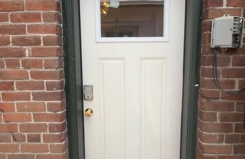 Its located down the alley on side of the building. A perfect retreat while being in the center of it all. Quick access to the park, community pool, bar, coffee shop, flower shop, bike shop, eateries and more.