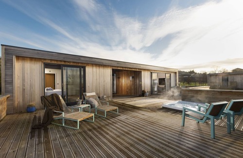 Step inside to a light and spacious open plan living, kitchen and dining area, with floor to ceiling sliding patio doors that lead out onto your terrace. You can dine al fresco after creating a masterpiece in the high-spec kitchen or simply sit back and watch the world go by from under the starlight roof. Not forgetting the inviting hot tub, where you can catch the setting sun with a glass of fizz in hand.