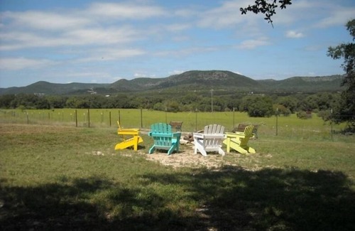 Four Frio Sisters is a charming house nestled on a hillside in the heart of the beautiful Texas Hill Country. You can enjoy the fantastic views and million dollar sunsets from a swing on the back porch or enjoy a game of dominoes with friends on the covered front porch. Roasting marshmallows in the fire pit, relaxing around the outdoor fireplace, playing horseshoes, laying in the hammock, grilling steaks or sitting on a bench watching the wildlife and day dreaming are only a few of the outdoor activities available. For those youngsters and young at heart adults feel free to enjoy our teeter totter. At the end of the day you can shower under the stars in our private outdoor shower.