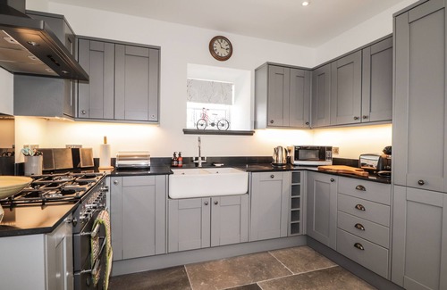 Amenities: Oil central heating with woodburning stove. Electric range oven, gas hob, microwave, fridge/freezer, washing machine and dishwasher. x3 Smart TV with Freeview, WiFi. Fuel, power and starter pack for woodburning stove inc. in rent. Bed linen and towels inc. in rent. Highchair and travel cot available on request. Off-road parking for 3 cars. Enclosed rear garden with furniture. Decked area with hot tub. Sorry, no pets and no smoking. Shop and pub 2.5 miles. Note: There are two steps leading up to the king-size bedroom. Note: This property has a ramp access for those with limited mobility