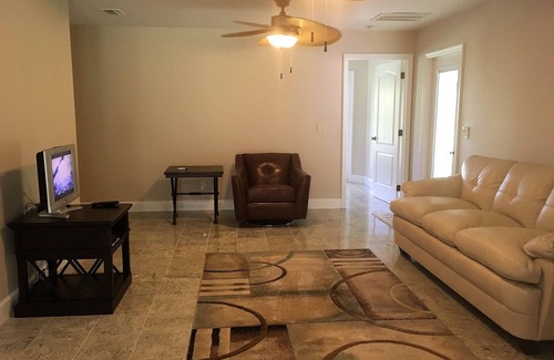 Located in the Cocoa / Port St. John / Titusville area, the ranch is a short distance from Kennedy Space Center, close to bioluminescent kayaking, cruises from Port Canaveral, Cocoa Beach and Orlando attractions. It comfortably sleeps up to 4 guests. It is also ideal for business travelers looking for corporate housing. Guests will have private access to the entire lower level apartment. Guests also have shared access to over 20 acres of wooded surroundings. The patio is ideal for sitting outside and enjoying the relaxing sounds of nature. Contact the host directly to reserve event spaces or to book private animal “meet and greet” sessions.