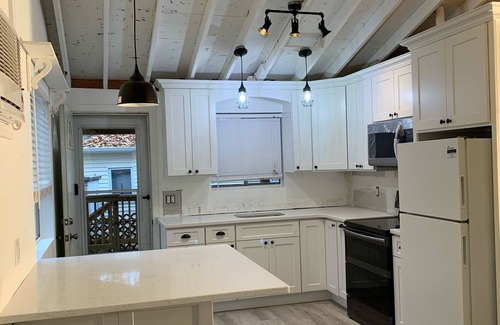 You have a 5 minute walk to a private beach. Our Surf Shack Cottage has a beautiful open floor plan with a cozy beach theme. The cottage has been completely renovated with a new bathroom, kitchen and flooring throughout. You'll enjoy the quaintness of a cottage and a large area for you and your guests to gather in. Play a board game or read a book with a glass of wine. The farm cathedral ceilings invite you to enjoy a relaxing cozy feeling.