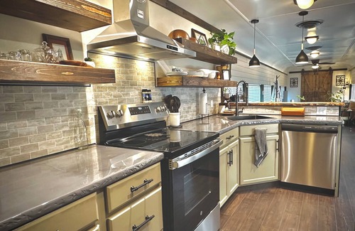 Welcome to The Train—a fully restored 1930s Pullman railcar turned boutique getaway. This historic railcar, once operated by the Missouri Pacific Lines, now offers a unique blend of vintage charm and modern comfort. With a full kitchen, spacious bedroom, 1.5 bathrooms, and a private deck overlooking a fenced backyard, it’s perfect for romantic escapes, solo adventures, or unforgettable weekend trips.
