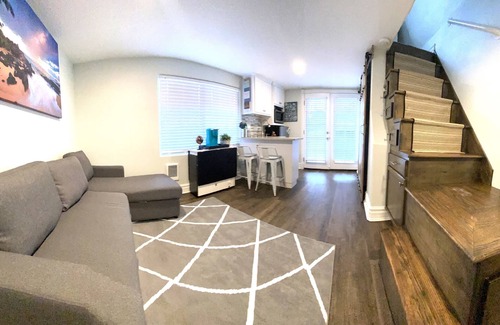 The second-floor bedroom requires going up and down several stairs. These steps are of uneven height and may be difficult to navigate. We have a handrail for safety, but please use caution. (Grab the handrail anytime going up or downstairs)