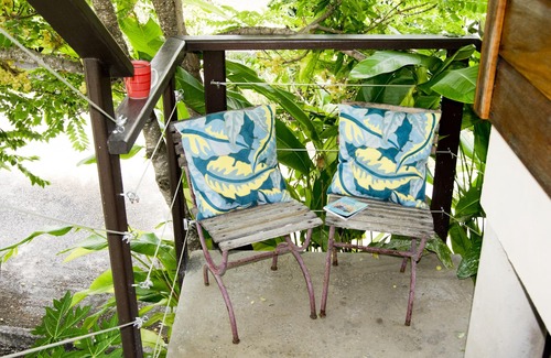 Our home is one of a kind ,a simple peace of art done by yours truly. It is an open plan so guests feel cozy. Yoga mats,scatter cushions in the skylight area ,foot stools ,indoor hammock and a bar height table in the kitchen so entertaining while cooking can take place. The Bathroom is a stone and glass one with a large Window for view and fresh air. A rain shower so guests get a feel of an out door nature bath in doors. The house is placed in an orchard setting with a range of fruit trees. Figs, bananas,five finger fruit ,pomegranate and more. Early morning greets guest with the sounds of birds and bees doctoring the plants and trees. You may even see a green monkey or few having breakfast from the orchards trees. From your open bedroom window is a distance ocean view with a nice breeze. Take your rest here or take a country walk .Adventure is what your looking for ,horse back ride ,bike it or maybe race around the state of the art Bushy Park Race track . We also have a camping tent for you seeker.Choice is up to you. We can make it happen. Our home is located in the South-East of the island so we sit between both coastal (Meccas) for you surfers and beach lovers.