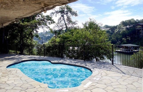 Enjoy this peaceful lake view on the south shore of Lake Travis. The "Treehouse of Lake Travis" was newly renovated in 2017 and offers 1st class amenities giving you a wonderful living space to gather around its beautiful kitchen peninsula, dine, or enjoy a cozy fireplace. Tiled Bathrooms are Spa-like and Bedrooms are well appointed with the finest linens. Such comfort will make you not want to leave. If you do, there is a swimming pool, hot tub, BBQ area and the Marina is steps away. Whatever you do you will have the opportunity to relax in this beautiful Hill Country and Lake setting.
