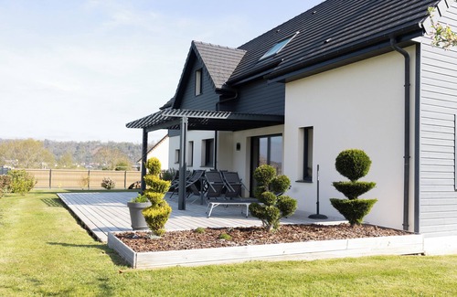 Nestled in Pont-Audemer, this 4-bedroom, 2-bathroom vacation home brings it all within your reach. Fans of nature and the outdoors will love being within a 5-minute walk from Boucles de la Seine Natural Regional Park and 36 minutes by car from Deauville Beach. You'll easily make the 24-minute drive to Honfleur Normandy Outlet or the 22-minute drive to Bec-Hellouin Abbey.