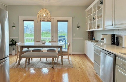 Vida Sol is designed and equipped to offer everything you would need for a 5 star beach stay. The spacious kitchen and dining area invite family and friends to prepare meals of any size and comfortably dine at the 7 person table. The covered front porch offers additional dining and lounge areas with our personal favorite views on the island ;)