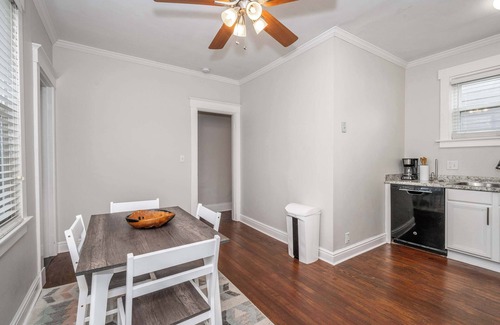 Once you step into the home, you’ll feel immediately welcome among the soothing neutral tones of the contemporary furnishings and classic décor. The plush, L-shaped sofa will be your go-to relaxation spot as you stream that new movie you’ve been saving on the smart TV. A dedicated workspace is a focused area to catch up on emails should work come calling while you’re away. An updated kitchen will speak to your inner chef, fully equipped for any of your mealtime endeavors and featuring ample counterspace and cabinetry for preparation and storage. Here, you can also enjoy meals at the dining table with seating for 4 or break out the cards for an evening of friendly competition. Begin each day on the home’s porch with your fresh cup of coffee in hand, making plans for the exciting day ahead.