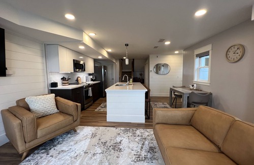 The Vue is the upper two (2) levels of a 4-story home that has 1 bedroom, 2 full baths, quality linens, and is outfitted with comfortable luxury Stearns and Foster mattress for a restful night's sleep. It has everything you need to relax, listen and watch the waves. Fully air-conditioned to make your stay comfortable on those warm days. While The Vue is on the shores of Lake Superior, it only has lake views with no access to the waterfront or fire pits.