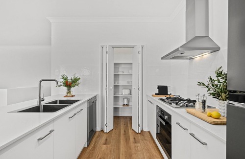 This spacious and modern property offers four bedrooms, the master upstairs with ensuite bathroom, 2 more bedrooms downstairs with Queen Beds and the fourth bedroom has 2 single beds. There is a fully equipped kitchen upstairs, two living areas with Smart TV and Wi-fi, and a laundry with washing machine. Whether you want to enjoy the stunning views of the hills and the sea from the balcony, enjoy a BBQ in the garden, or relax in one of the cosy living rooms with a good book or movie, The White House is the perfect place to unwind and recharge.
