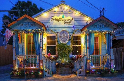The Wildflower Inn of False River is incredibly enchanting, a true labor of love crafted with 80% repurposed materials. While it may not be about perfect polish, its energy is absolutely invigorating. You'll find a serene meditation garden and a refreshing tank pool for relaxation. It's a magical haven perfect for a memorable weekend getaway, special celebrations, and even enchanting wedding parties. Each suite has its own unique, whimsical theme, making every stay truly magical, fun, and enchanting.