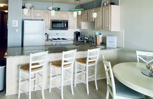 The most beautiful direct oceanfront views you can ever imagine! Do you want to vacation where you have great ocean views, sunrises and sunsets, access to the beach which is 50 feet away, and the owner lives locally, keeping a close eye on updates and repairs? We want you to feel like our condo is equipped like your own home, with updates in rugs and furniture. There is more kitchen serveware, dishes, and glasses than you will ever need! And who wants to cram beach equipment in an already over packed car? We supply four beach chairs for your use in the private owner closet on the parking/beach. An added bonus to the Windjammer complex is an elevator so you don’t have to haul everything up the stairs. Secure WiFi is complementary - download as much reading material and music as your heart desires. The ocean views and convenience speak for themselves! Please note that linens are not included, but are available as an add on. Ask for details!
