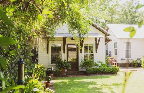 This guest house and courtyard were added to the property of a restored circa 1920s historic home in Beaufort's downtown historic district. This quiet street is two blocks from the Beaufort River at Bellamy Curve as well as eateries and shops of Uptown. There is one bedroom with a queen bed, two small closets, and en suite bathroom with tankless hot water heater. The open living room and kitchen has vaulted ceilings and large windows that look out to the garden. It is fully equipped for cooking and baking with refrigerator, freezer, oven, cooktop, microwave, toaster, pots and pans, kettle and French press. The living room has a bistro table, comfortable sofa, armchair and 48 inch smart television and wireless internet. There is a washer and dryer and pantry closet. Off street parking for one car is available. Enjoy the shared courtyard after a day of exploring. The University of South Carolina Beaufort (USCB) and Pigeon Point Park are five blocks away. It is 11 blocks to Henry C. Chambers Waterfront Park and downtown Beaufort's Bay Street with a plethora of shops, galleries, and restaurants on the water.