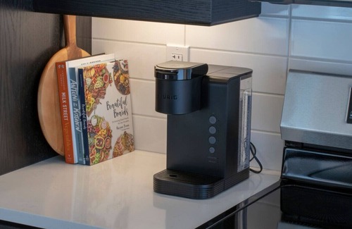 The living space nicely blends with the dining room and kitchen creating a welcoming open concept atmosphere. The kitchen is well-appointed with a stove, full-size fridge, dishwasher, and microwave. All kitchen essentials are provided including a Keurig coffee machine and some coffee pods. We advocate for eco-conscious practices, urging guests to recycle and compost and minimize the use of packaged products. A second story deck has been added for guest enjoyment.