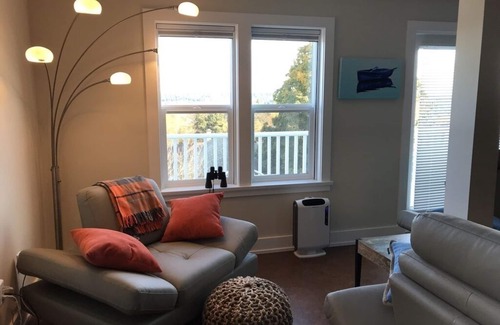 This suite is fully furnished with modern appliances. It has great ocean views from its private deck and is a block from charming Ladysmith restaurants and stores. The beach is a ten minute walk or three minute drive away.