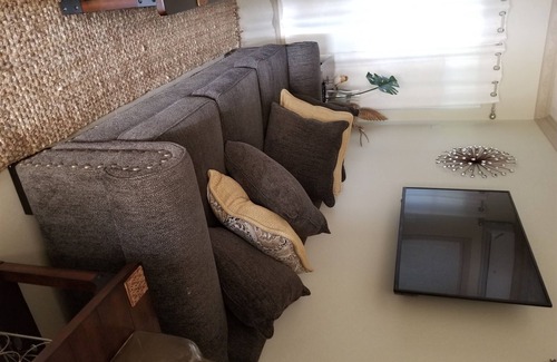 Beautifully designed 2 Br 2.5 Ba town home boast a spacious 1200 sqft in a modern gated development. luxurious furnishings with a direct view of the Rosehall & Flamingo Beach coastline. Your villa has a fully equipped Kitchen(stove to be operational feb.2020) microwave, toaster, coffee maker and all necessities to ensure an exquisite relaxing stay. Have a candle lit dinner on your balcony overlooking the mountains or enjoy delectable dinner inside. 15 minute drive from MONTEGO BAY AIRPORT.