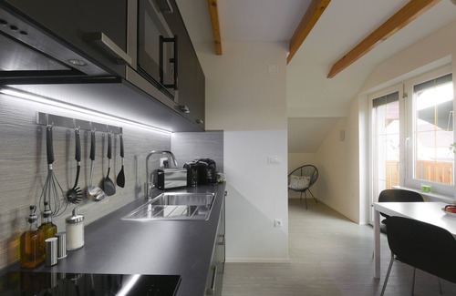 Located within a 10 min walk from the town centre and Lake Bled apartments Nija are the perfect accommodation for guests seeking elegantly furnished lodgings, serenity of a residential neighbourhood and picturesque views of nearby mountains. In addition to the stylish apartment, guests are welcomed to enjoy the comforts of a shady wooden patio and the richness of homegrown vegetables straight from the garden. While parents rest and relax in the garden, their children can safely play nearby.