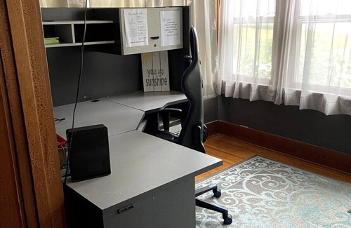 Main level hosts 2 bedrooms, 1 bedroom with a king bed, and one with a full bed, and one full bathroom. Fully remodeled kitchen, laundry room, living/dining room and an office with full size futon, desk and lots of windows.