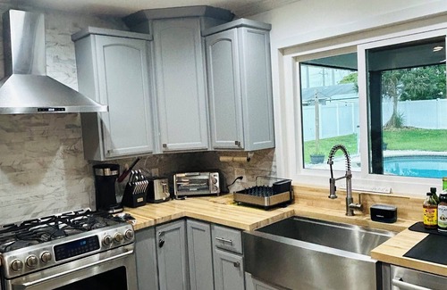 This charming 3-bedroom, 2-bath single-family home offers comfort and style for your stay. Enjoy the large backyard with an inviting inground pool, perfect for relaxation and fun. Cook up a feast on the BBQ grill and unwind in the outdoor area featuring a covered roof and ceiling fans.