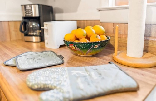 The fully-equipped kitchen has everything you need to prepare delicious meals, from classic appliances to a rustic cabin feel. Gather around the dining table for a quick meal or take your coffee on the go and savor the fresh mountain air.