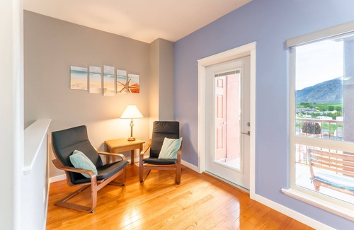 This top floor updated property is accessible by elevator, is a quiet end unit with serene lake and mountain views and all breezeways are outdoors. Your living space has modern vaulted ceilings, hardwood floors, tile, carpet and granite counter-tops. The kitchen is well equipped for your cooking and serving needs. Sit in amazement and take in the lake and mountain views from either of your patios, fantastic for your morning coffee or relaxing and day-dreaming about tomorrow. Enjoy the seasonal pool designed with families in mind, or cross the street to enjoy the private pier or the beach. Water sports rentals are available across the street and sẁiẁs (Haynes Point) Provincial Park is directly across from the private pier. During your stay you will have the ability to access many of B.C.'s best wineries, great golf courses, water sports, and fine and casual dining all within walking distance or a short drive. If you come to wine country during the winter you can visit the family friendly Mt. Baldy in less than an hour's drive or Apex Resort in less than an hour and a half. Pioneer Walkway, a lake-shore path situated immediately outside your complex is ideal for early morning or evening strolls, bike rides, roller blading or jogging. Whether your interests are water fun, golfing, biking the Kettle Valley Railroad, wine tours and tastings or skiing, our goal is to ensure your stay is comfortable, enjoyable and memorable. Visit any time of year, there is always something to do; year round wineries, water sports, beaches, world-wide cuisines, biking, hiking, skiing, and tours. Split level with 3 bedrooms, full bath, ensuite and powder room as well as in-suite laundry facilities. Free parking on site. Communal fitness room and seasonal hot tub on site.