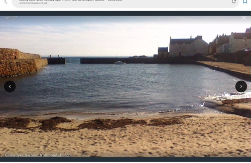 Ground floor apartment in the east neuk village of cellardyke. One double bedroom, open plan kitchen dining and livingroom, beautiful sea views overlooking the may island and beyond. All on one level with the bathroom having a walk in shower. Everything in the property for a self catering holiday. There is parking at the door of the property. There is no garden at the property. Close by there is a shop, bakers, and haven restaurant beside the old harbour in cellardyke. The property licence number is F1-00926-F fife council.