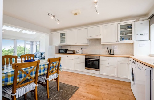 Amenities: Gas central heating, electric fire. Electric oven and hob, microwave, fridge/freezer, washing machine, dishwasher, Smart TV, Fibre broadband WiFi. Fuel and power inc. in rent. Bed linen and towels inc. in rent. Off-road parking for 3 cars. Rear enclosed lawn with furniture. Sorry, no pets and no smoking. Shop, pub, café on-site, beach short walk away. Note: Please be aware of hump in road at entrance to drive. Note: Check in 3pm check out 10am. Note: Swimming pool and small gym open to visitors except in school holidays. Note: Steps coming down from property to garden with handrail so it may be unsuitable for people with severe mobility issues