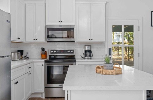 Welcome to a world of elegance and comfort at Three Dog Ranch. Step inside and be captivated by the sheer beauty of this exquisite property. The fully-equipped kitchen, designed for culinary enthusiasts, boasts modern appliances and ample counter space. Prepare mouthwatering meals and gather around the spacious dining table to indulge in the flavors of your creations. Alternatively, venture to the outdoor dining area and savor your meals amidst the soothing sounds of nature for an unforgettable al fresco experience.