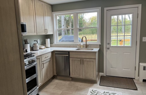 You can enjoy the outdoors on our large private deck, utilize our top-of-the-line gas grill, and relax in the spacious fenced-in yard or by the fire pit—all available right on the property. There are plenty of opportunities for relaxation and fun without needing to leave the cottage.