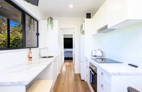 Experience the perfect blend of nature and luxury in our brand-new converted shipping container on Tamborine Mountain. Wake up to breathtaking views of the Gold Coast framed by three majestic hoop pine trees. Enjoy modern comforts like a full-size kitchen, smart TV, and super-fast Wi-Fi in a Hamptons-inspired, tastefully decorated tiny home. Unwind in the fresh mountain air and relish the peace of your own private sanctuary. Whether you're cooking up a storm or simply relaxing, Three Pines Tiny Home is your dream getaway come to life.