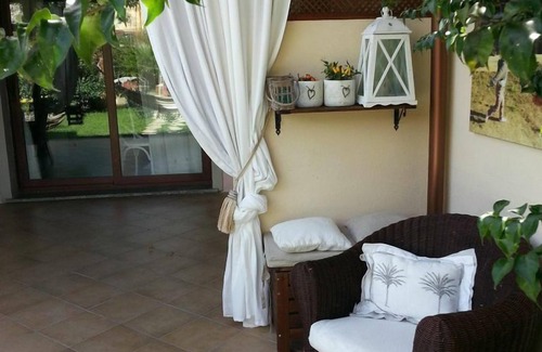 LAST MINUTE AUGUST. House with garden and large veranda, in a quiet and verdant residence on a hill 200 meters above sea level. Characteristic furniture, recently renovated and equipped with every comfort. Ample internal and external space characterized by a garden and a large veranda with a table for 6-8 people and a fully equipped external masonry kitchen. Additional rear terrace for storage use. Interior environment consisting of living area with sofa bed, dining table, 48 inch TV and small kitchen, and two bedrooms, one with a double bed and the other with a bunk bed. The furnishings include the use of natural colors and materials for the realization of finishes, lighting, etc. The large outdoor veranda equipped with a hammock and deck chairs and surrounded by white curtains allows you to spend moments of true relaxation savoring the sounds offered by nature. Access to the beaches is possible thanks to a shuttle service and in the residence there is a large swimming pool, tennis court, soccer field and spa. Wonderful and multiple equipped or more pristine beaches nearby, such as the famous beach of Porto Pollo, known to Windsurf and Kitesurf enthusiasts. 1.5 km boats for the islands of the Maddalena Archipelago. Ideal area for bicycle, hiking, horse, fishing and golf enthusiasts. For families, an ideal place for recreation, there is an entertainment service in the adjacent building that will delight children even on the beach. Also in the nearby Palau shops of all kinds, a nice playground and the typical Sardinian market. The area is famous for the many resporantini with typical cuisine from which it is possible to enjoy splendid sunsets.