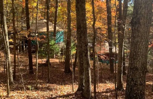 This three-story yurt is an architectural wonder, featuring bamboo floors, heat and a/c and other modern amenities. Situated on 3 private acres at the top of an end-state-maintenance road with streams and hiking paths, the property exemplifies the beauty and diversity of the Blue Ridge Mountains. A huge fenced dog pen and cozy dog house make it possible to travel in style with the whole furry fam, while outdoor deck seating makes it feel like a treehouse gathering. Why be square?!