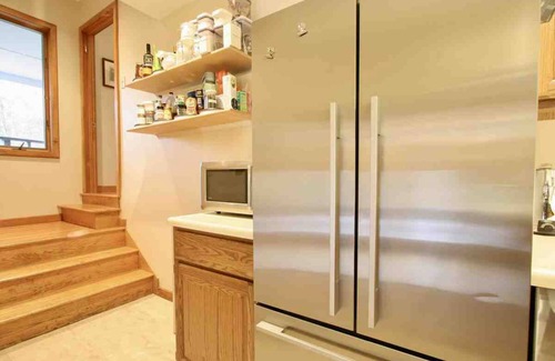 The kitchen, although compact, has all the appliances and equipment necessary to make fantastic meals from the locally raised and grown food that you can obtain at the many farmer's markets in the area. All essentials are included, such as towels, bed sheets, soap, toilet paper and pillows. There are fully stocked pantry shelves including coffee beans, essential kitchen staples, condiments and dry goods. The kitchen includes a Kitchen Aid ceramic top convection range, Bosch dishwasher and Fisher Paykel french door refrigerator/freezer. The kitchen inventory includes a Breville toaster, Panasonic combination microwave, steamer and convection oven, Vorwerk Thermomix (a German blender on steroids), an Instant Pot, Cuisinart food processor, Baratza Coffee Grinder, and a Technivorm drip coffee maker. The kitchen has been provisioned with fine kitchenware including from Cristel, Le Crueset, Mauviel, Finex, Wusthof and ScanPan. The upper deck contains a gas grill, and a Blaze Kamado-style charcoal grill is located in front of the house near the lower deck. For in-home entertainment, the living room has a 4K high definition television connected to a Dish satellite receiver. Both this television and the one located in the large top-floor bedroom are connected to internet streaming services provided by Roku boxes. We have no air conditioners. Because of the cool mountain air and the 1300 feet elevation, we only occasionally use the provided fans on the hottest Summer days.