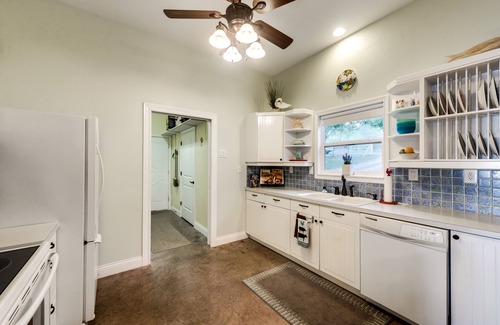 Behind the house sits a 28' x 36' metal barn/garage with an air conditioned and heated living space with a twin foldout coach, industrial kitchen (clean up your fresh fish!) and bathroom. Enjoy the ping pong and foosball tables. (Use the exercise equipment at your own risk).