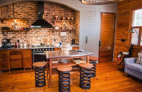 In every bedroom , I provide you with a sound machine as well as smart-charging stations for your electronic devices. Enjoy the combination of cypress ship-lap wood walls and heart pine throughout. Most, if not all, heart pine material used dates back to approximately the year 1600.