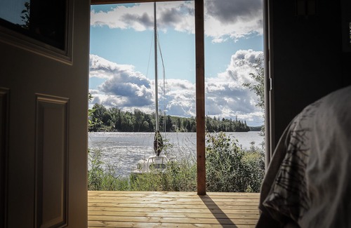 This is a 10X10 tiny cabin. This is meant to be a budget option for people who like camping but do not like sleeping in a tent. This cabin has one ultra-comfortable queen bed, a table, 2 chairs, and a lamp. The large covered porch is just a few meters from the shores of Lake Cecebe. The rustic feel is captured with a reclaimed hardwood floor. For the bathroom, there is a private outhouse. There is also an indoor bathroom/shower within walking distance. A map is included for self-check in.