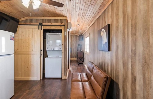 Get away from it all at this cozy cabin! This one bedroom one bath tiny home is one of five cabins on over 10 acres. Enjoy fishing in the stocked pond or relax on the porch taking in the views. This is a perfect getaway for fisherman visiting the lake or couples. Or there's even a futon sleeper for the kids. Have a larger group? Ask about renting all 5!