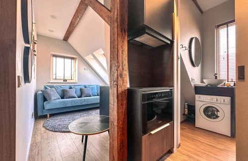 Nestled in the heart of Klaipėda, this modern loft apartment blends comfort and elegance. With expansive windows and a cozy loft area accessed by ladder, it suits those valuing design and a bit of adventure. Unsuitable for very young children due to ladder. it's ideal for families with older children, couples, or explorers looking for a retreat to unwind after a day of city or seaside leisure. The loft has a height of approximately 2 meters.