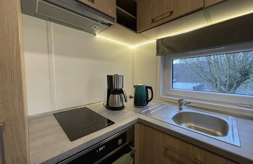 "Tiny Haus Ela", 2-room mobile home 25 m2. Object suitable for 2 adults + 2 children. Cosy furnishings: living/sleeping room with 1 double sofabed and satellite TV. Exit to the terrace. 1 room with 1 french bed (140 cm, length 200 cm). Open kitchen (2 induction hot plates, kettle, microwave, electric coffee machine). Shower/WC. Electric heating, air-conditioning. Terrace. Terrace furniture. Please note: non-smoking house. Smoke alarm. ATTENTION: The Wi-Fi connection may be limited depending on capacity.