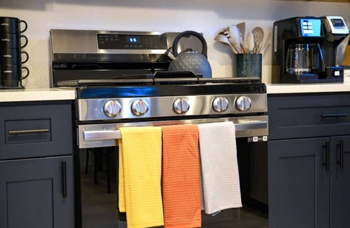 Designed with modern flair and functionality, our tiny home boasts state-of-the-art amenities. Sleep like royalty on a premium DreamCloud mattress in the queen-size bedroom. The full bathroom and kitchen come equipped with brand-new Samsung appliances, including a washer and dryer, making your stay as convenient as it is comfortable. With us living in the adjacent main home during the warmer months, you can rest assured that help, recommendations, or a friendly chat are just a stone's throw away.