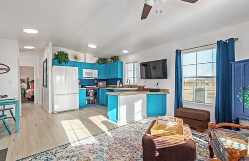 Come out to the peace and quiet of the desert. Stunning sunsets, Native Cactus, Bird watching, Walking. Many activities nearby like Southern Dunes Golf Course, Duke Golf Course,Skydiving, APEX car racing if like to watch those expensive cars, Arizona Soaring nations leading provider of Glider training and rides .Take a to the base of the Mountains, Great Place to decompress from the stress of everyday life.The home features great room floor plan (Open Concept)and just 640 square feet.Enjoy relaxing Arizona Summers or Winters and feel peaceful. Private backyard and we have a Electric Vehicle Charging station hook up!