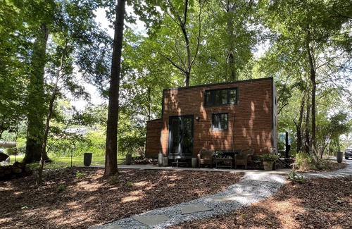 SIGNIFICANT DISCOUNTS GIVEN FOR WEEKLY & MONTHLY RENTALS! A complete jewel in the hustle bustle of Atlanta. Minutes from central ATL hotspots like GWCC and Mercedes Benz Stadium. In the middle of popular Upper Westside and yet an oasis of wooded peace. Private trails and a public park are (literally) outside your front door. A large full glass double door gives views into the forest from the cozy two person couch. Come work or just hang out in nature. Fire pit steps away. Solar powered with EV charger (Level 2) available for use.