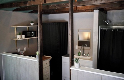 This tiny home makes for a simple and peaceful stay. Located in the lovely Galloway neighborhood, it is within walking distance to a nice park, breweries, and restaurants. Also located near the freeway and a grocery store.