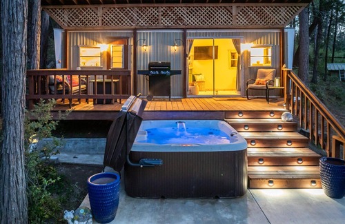 Tiny home with spa/firepit/and more! is located in Oakhurst. Tiny home with spa/firepit/and more! provides accommodation, featuring Barbecue/Outdoor Cooking, Child Friendly, Hot Tub, among other amenities. This House features Barbecue/Outdoor Cooking, Child Friendly, Hot Tub, to make your stay a comfortable one.