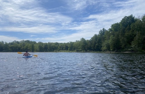The “ Hemlock cabin”, sitting in the middle of 160 acres of nothing but nature, nestled in a beautiful grove of hemlock trees, with views and nature all around. Explore the trails, take the canoe or kayaks out on the nearby lake. Relax on the hammock, site by the campfire, hike the trails, the property is yours to explore! Minutes from the beautiful historic town of Perth on. Total peace and quiet, come and relax with us.