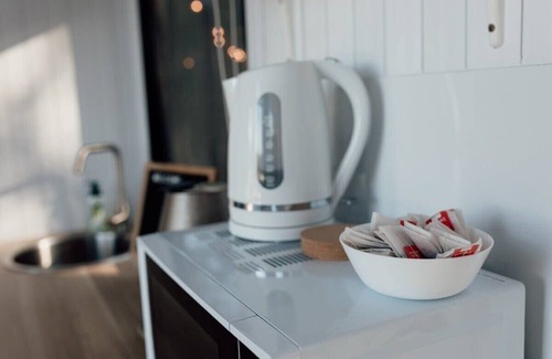 A cozy 139-square-foot accommodation with easy access to water, split air conditioning, a kitchenette, cooking equipment, and excellent bathroom facilities. These amenities include an eco-friendly cassette toilet with a removable waste-holding tank, hand basin, and gas-heated shower.